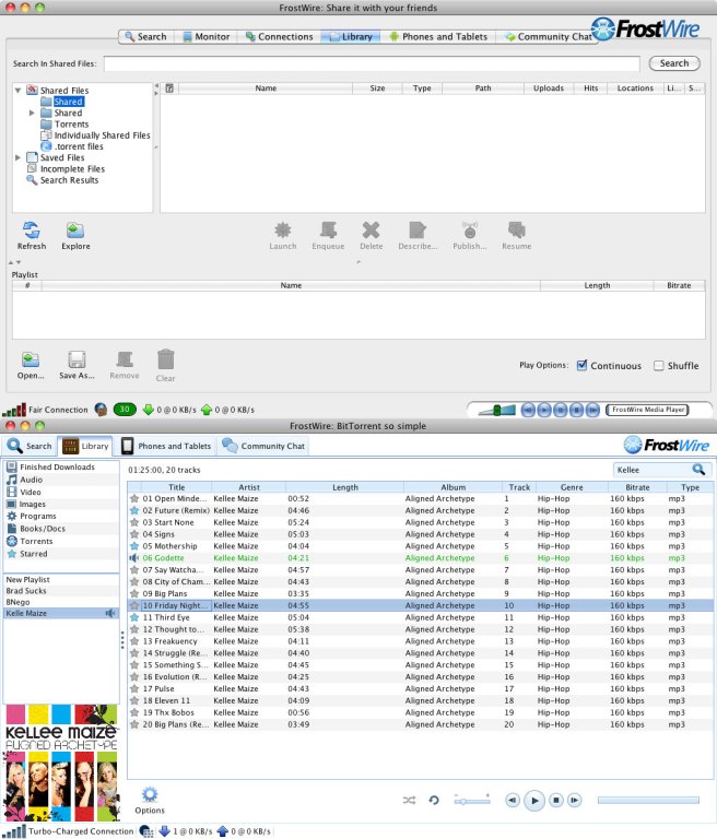 The FrostWire 5.2.x series focus on better media management and a more integrated user experience.