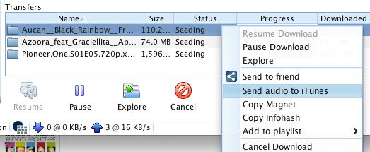 * Share audio files (on social networks) or create torrents of these files right out of the playlist.
