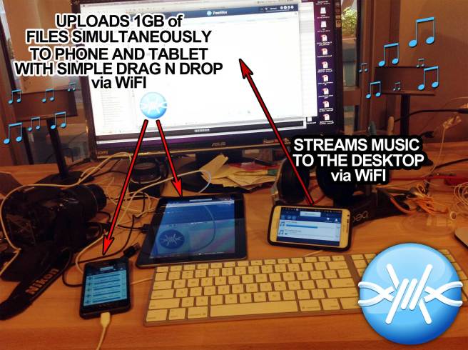 Upload gigabytes of files to your Android devices (up to 3 devices at the same time) via WiFi with a simple drag and drop of a folder or a selection of files.