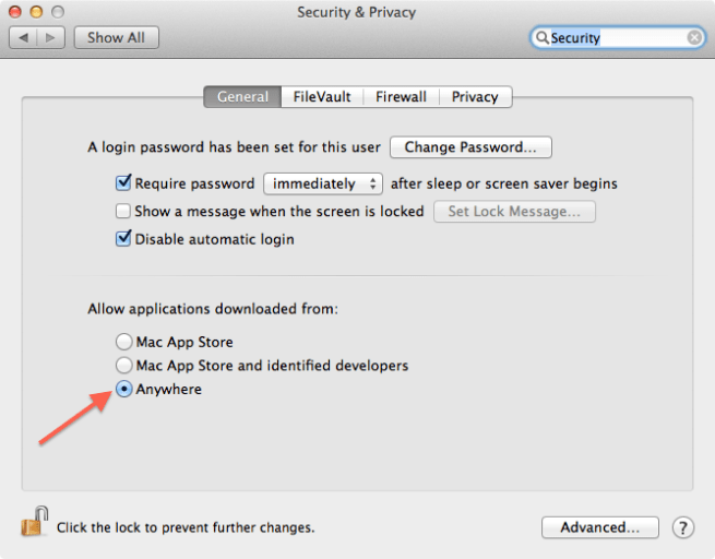 4. Restore your security settings to their original value (Mac App Store and identified developers)