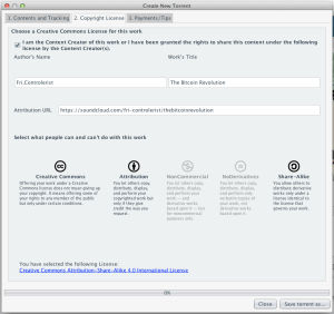 FrostWire integrates Bitcoin donations and Creative Commons licensing into Torrent files.