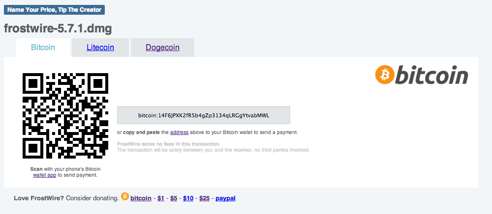 FrostWire integrates Bitcoin donations and Creative Commons licensing into Torrent files.