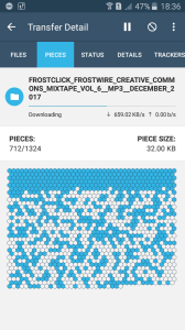 The year is almost over but we are still working! To end 2017 we have decided to release FrostWire 2.0. FrostWire 2.0. for Android is a major release of our app. We created a new details screens for BitTorrent transfers. You will love it! You will notice that it’s so relaxing to see how a Bittorrent swarm downloads the file pieces into our new Piece Hive view.