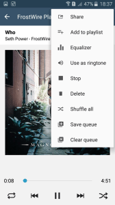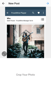 On the other hand, now when you share a track that you are enjoying on social media, Frostwire will automatically attach a screenshot of thw music player. You can always delete the attachment from your social media post if you don’t want to include it. This is very useful if you want people to know what you are listening. For example, you can share it on Instagram, Facebook, etc!