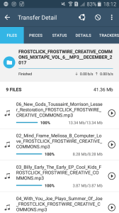The new transfer detail screen for BitTorrent transfers has several tabs! The first tab is Files. On Files, you can see what files are included in the torrent.